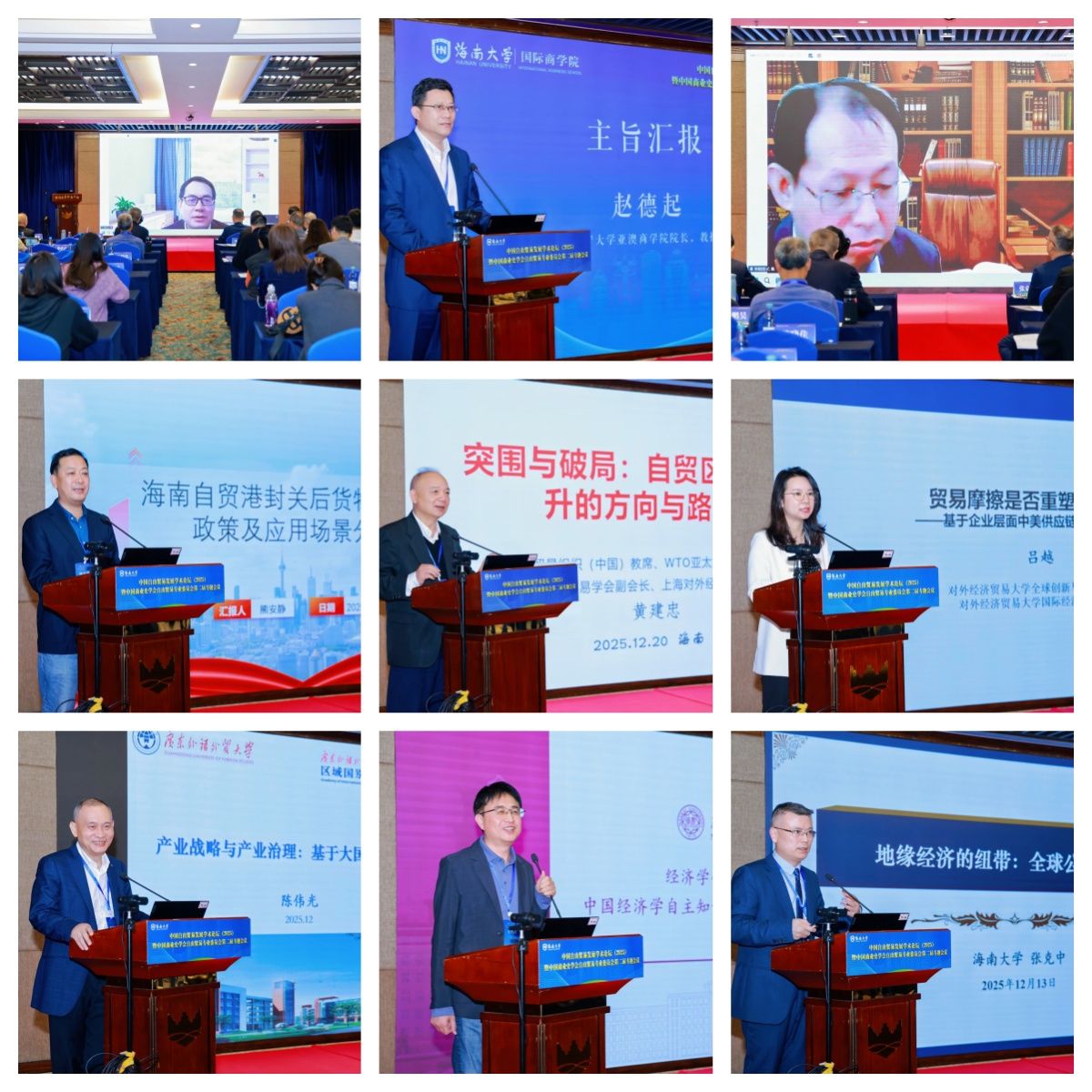 陈波教授和南开大学李世杰教授主持。9位专家学者围绕自贸港封关、产业发展与韧性、数字经济、区域联动等关键议题展开深度研讨。山东财经大学校长洪俊杰教授聚焦数字化趋势,点明数字化是塑强开放型经济新优势的关键支撑;辽宁大学赵德起教授解析中国经济发展中的治理逻辑,阐明科学治理体系对经济持续健康发展的保障作用;广东外语外贸大学申明浩教授探讨高水平开放背景下大湾区与海南自贸港联动发展路径,为区域协同开放提供新思路;上海对外经贸大学黄建忠教授围绕自贸试验区提质增效,指出突围破局的核心方向与实践路径;海南社科院副院长熊安静聚焦海南自贸港封关运作,详解封关后核心政策应用场景与潜在商业机遇;对外经济贸易大学吕越教授分析贸易摩擦与全球供应链重塑的内在关联,为产业链供应链安全稳定提供理论参考;广东外语外贸大学陈伟光教授立足大国博弈视角,阐述产业战略与产业治理的关键逻辑;南开大学王乃合教授强调构建中国经济学自主知识体系的重要意义;5楼自拍