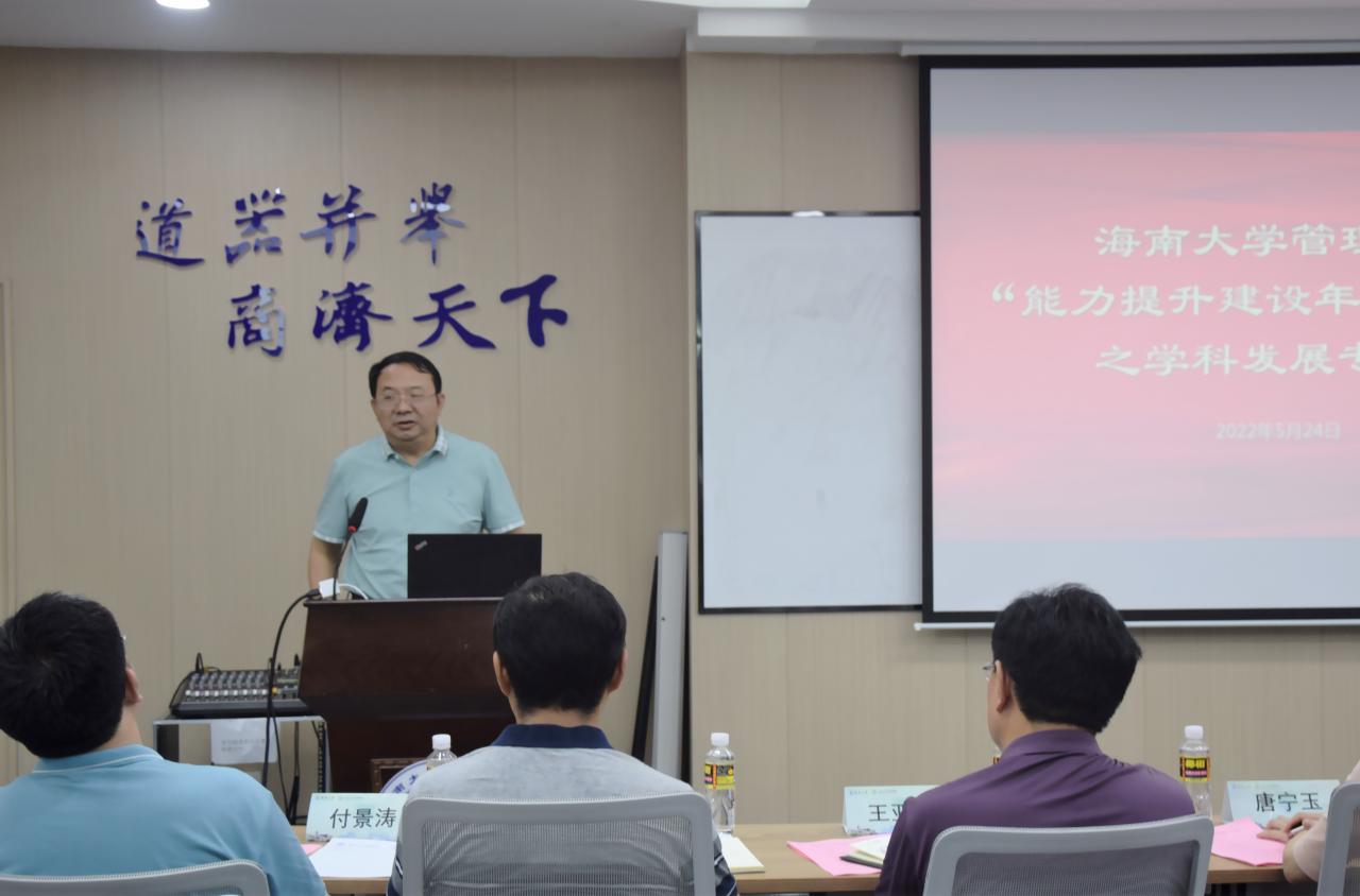 副校长傅国华、研究生处副处长于涛、人文社科处副处长王亚卓,管理学院全体院领导、学术委员会委员、各系主任及青年教师等出席会议。会议由管理学院党委委员、副院长赵达主持。
