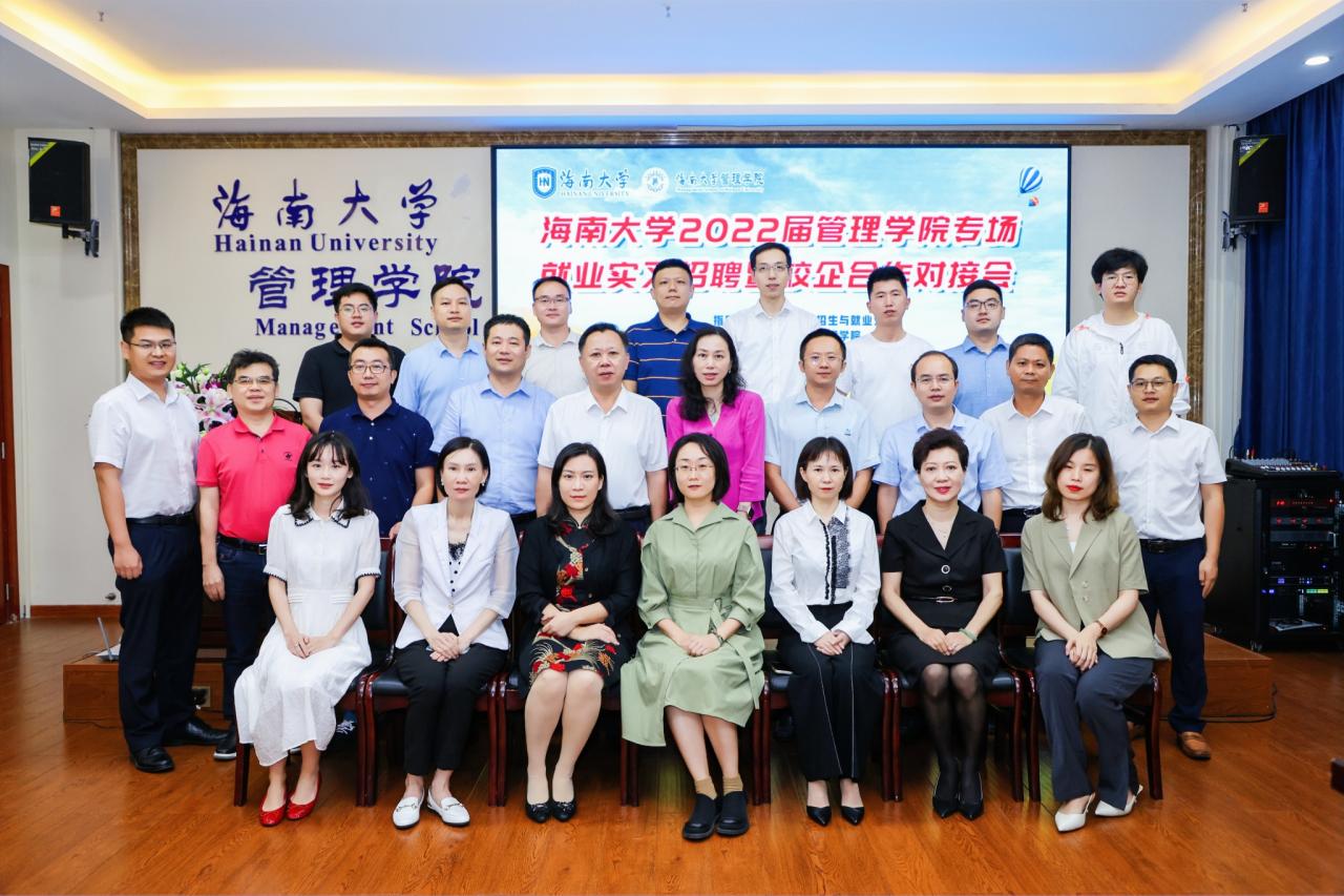 副校长傅国华、招生就业处副处长张婷,管理学院院长唐宁玉、党委书记邢谷川、副院长张德生,天工书院党委副书记(主持工作)易振,管理学院副院长童泽林等出席会议。57家企事业单位代表参加会议,海南电视台、中新网等媒体现场报道。会议由张德生主持。