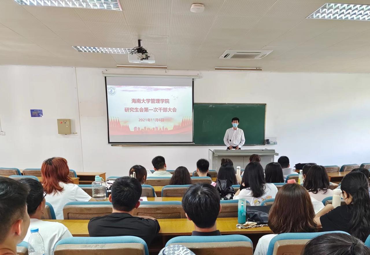 管理学院研究生会第一次干部大会在第二教学楼208教室召开。会议由崔增锐主持。主要分为三个部分:前期工作汇报;近期工作部署;咨询意见建议。