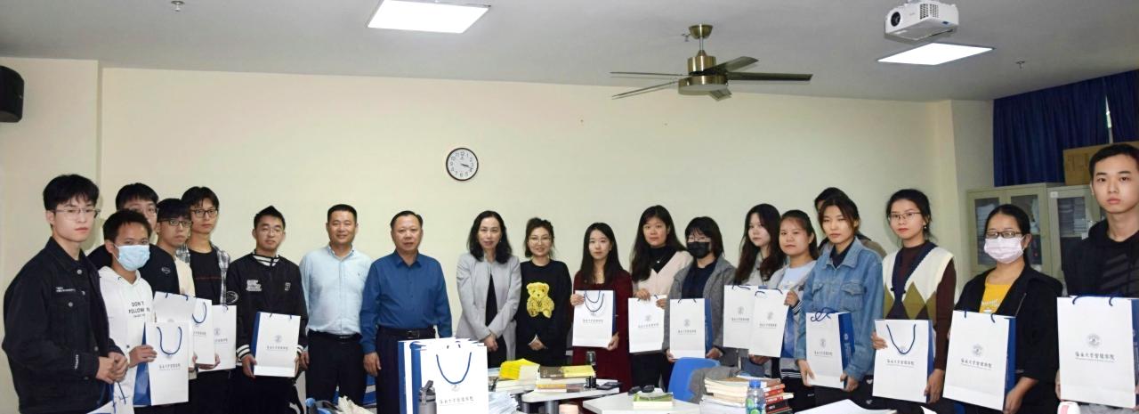 最后,各位学院领导、老师为考生们发放了考研暖心大礼包,并合影留念。